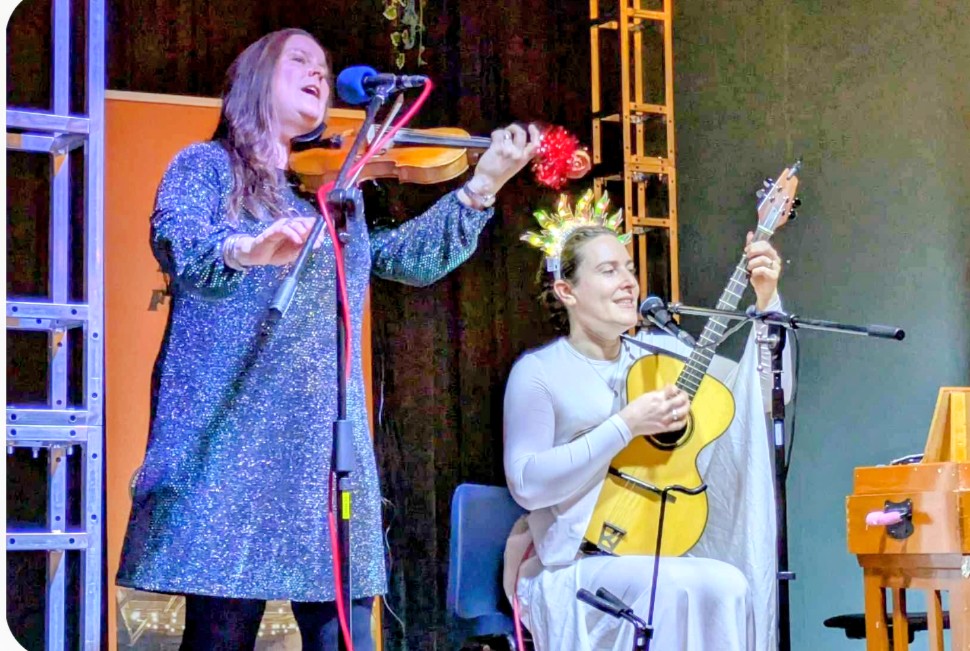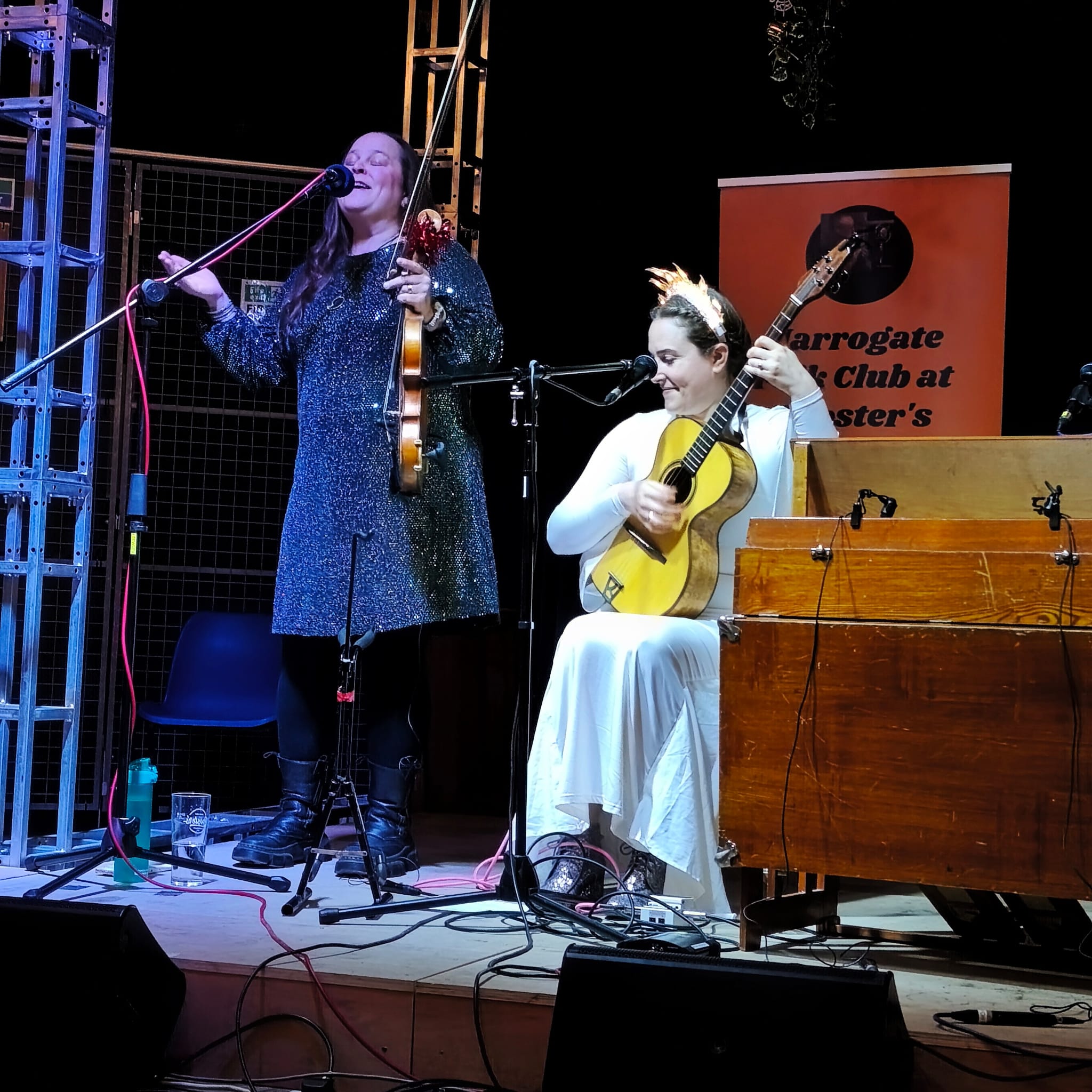 To complete a magnificent year of Harrogatefolk concerts, this December we Welcomed Bryony Griffith and Alice Jones as part of their festive Wesselbobs tour. It was a stellar celebration of Yorkshire music and humour, Alice came dressed as a candle [!!!] and they both joined the house band for for a lively reel at the beginning.